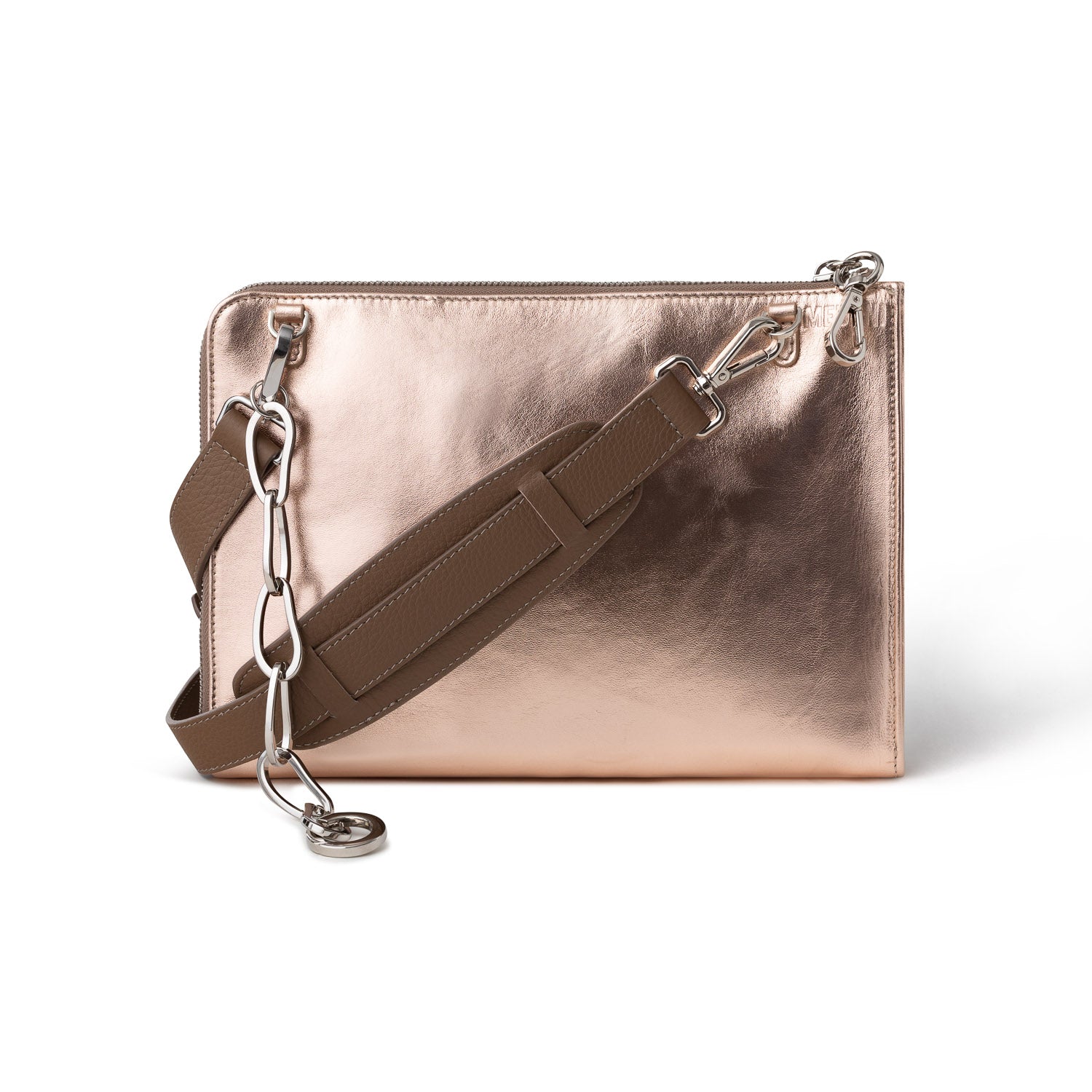 Snap on the leather strap to transform the IPAD into a Cross-Body Bag for your day about town.
